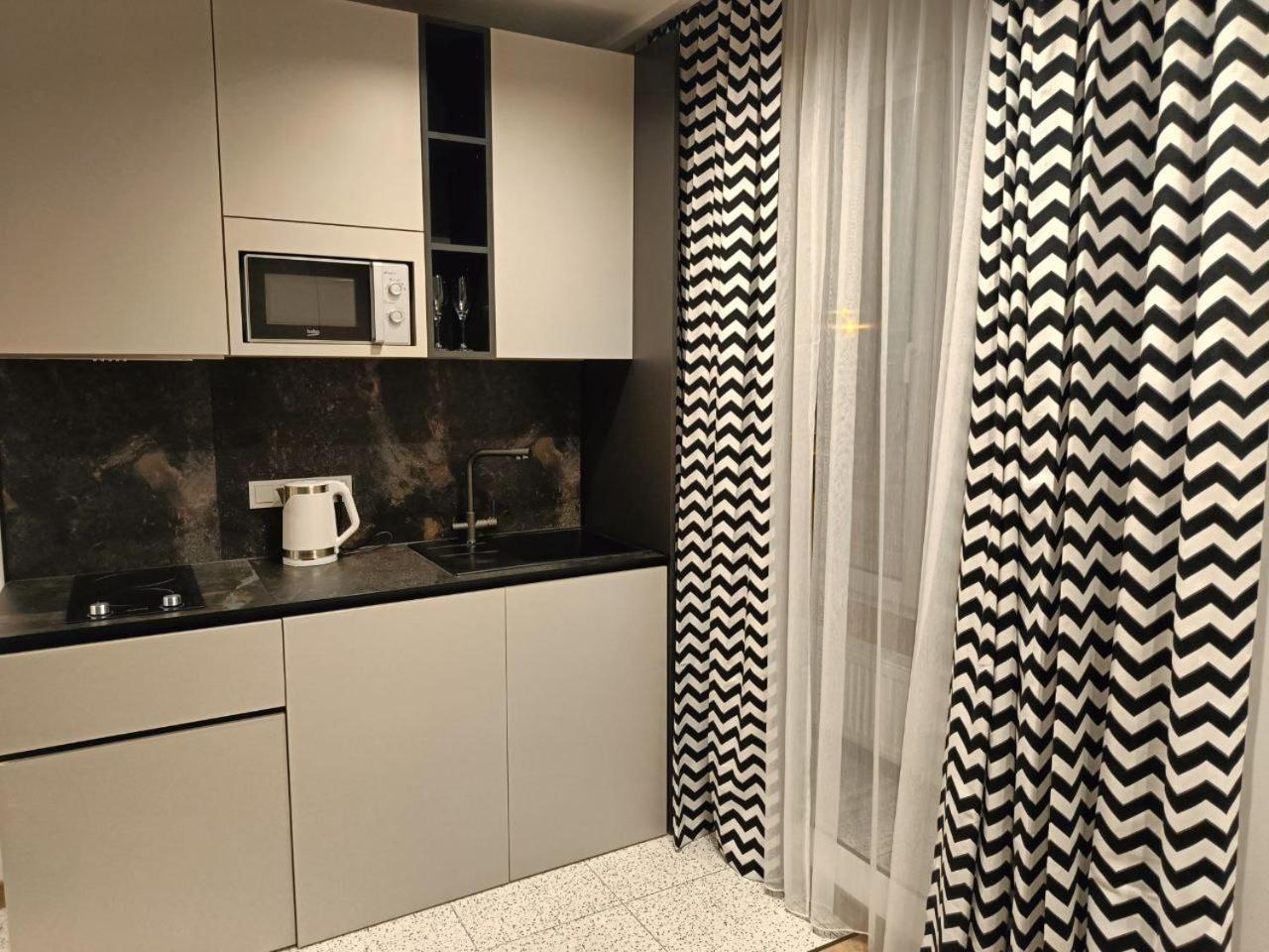Studio Apartment. This air-conditioned apartment consists of 1 living room, 1 separate bedroom and 1 bathroom with a shower. The well-equipped kitchen features a stovetop, a refrigerator, kitchenware and a microwave. This apartment has a washing machine, an electric kettle and a flat-screen TV. The unit offers 2 beds.